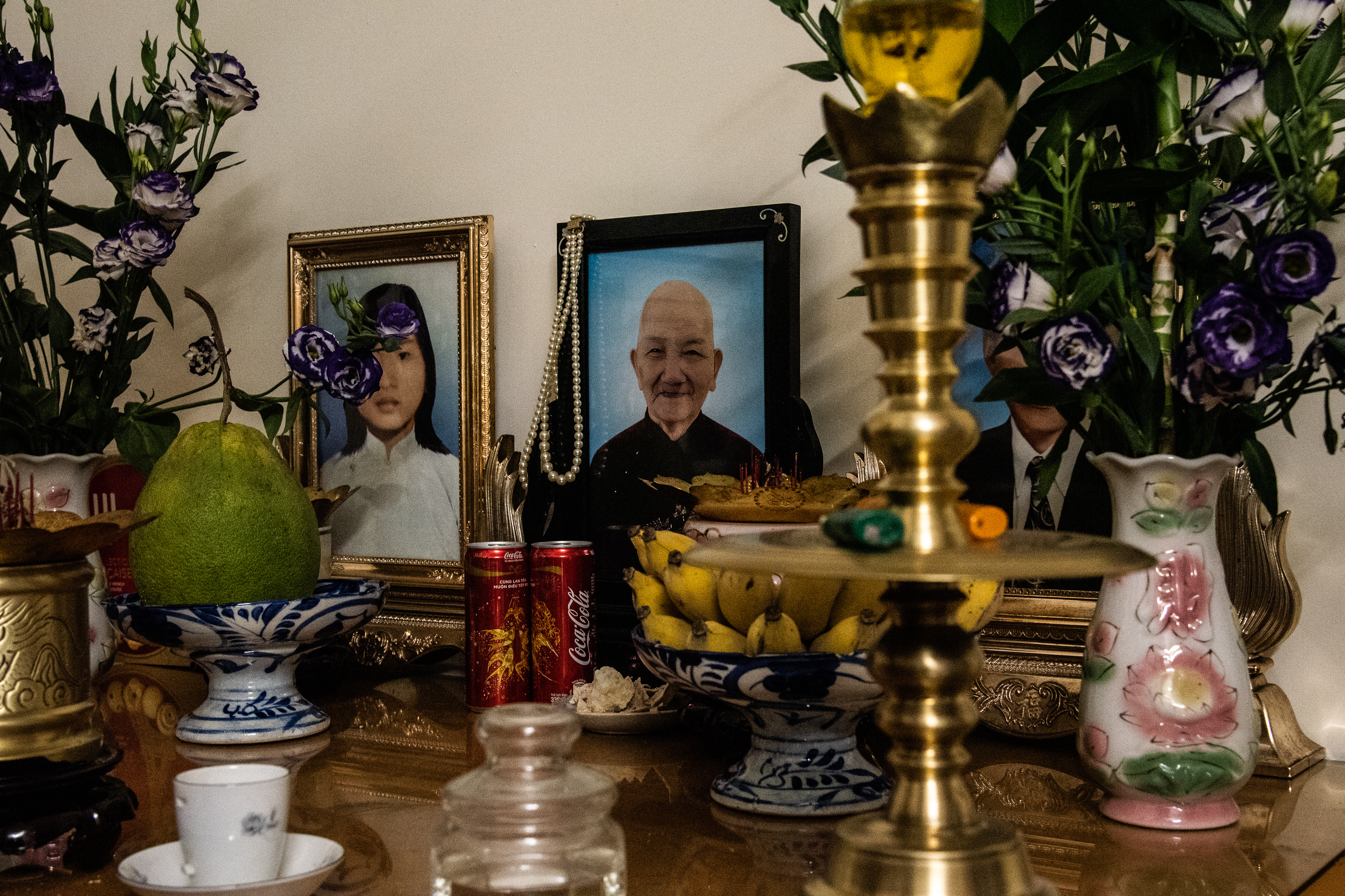 The family are Buddhist and the top floor of the house is devoted to religious observance.