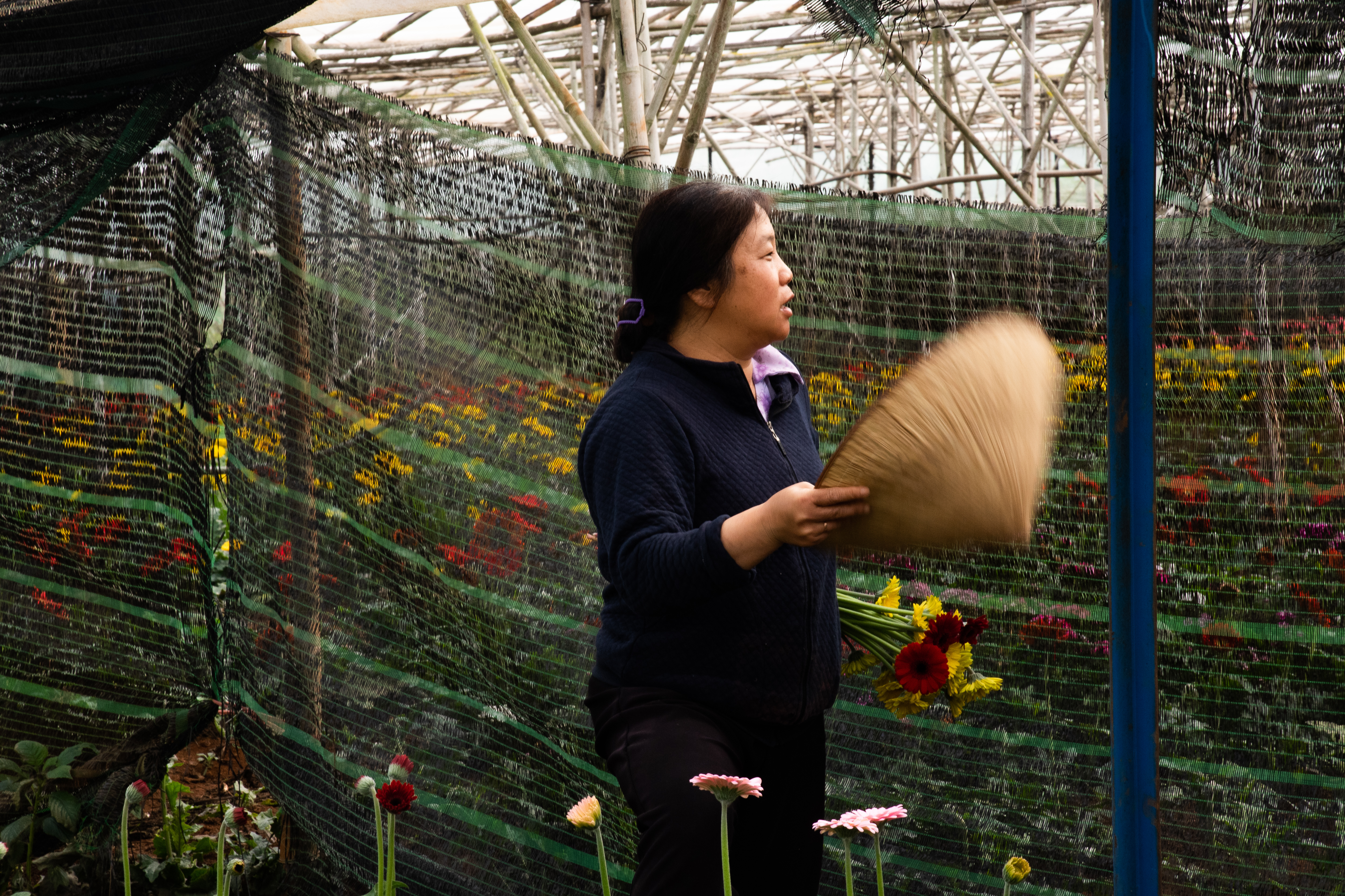 This woman owns and operates this florist green house.