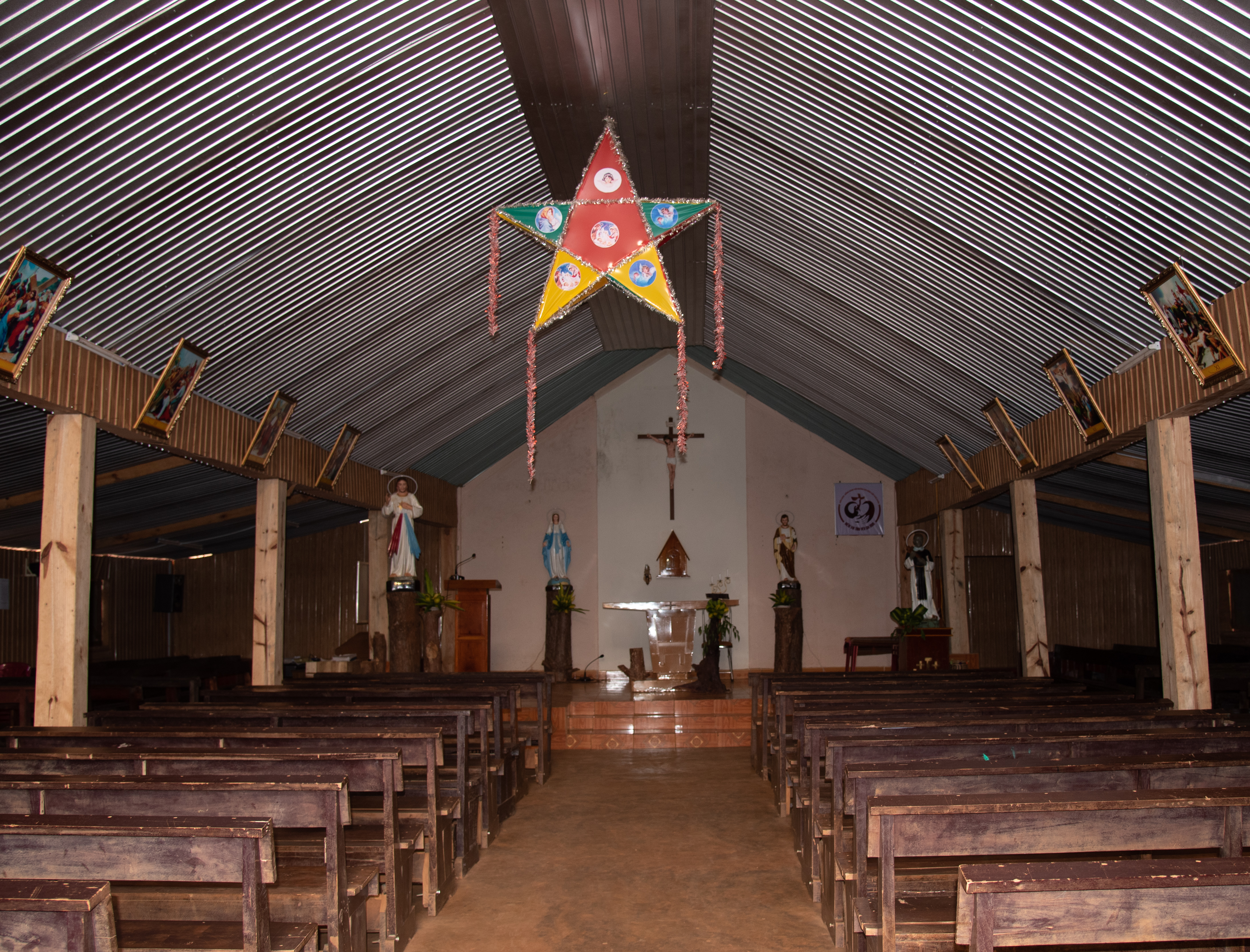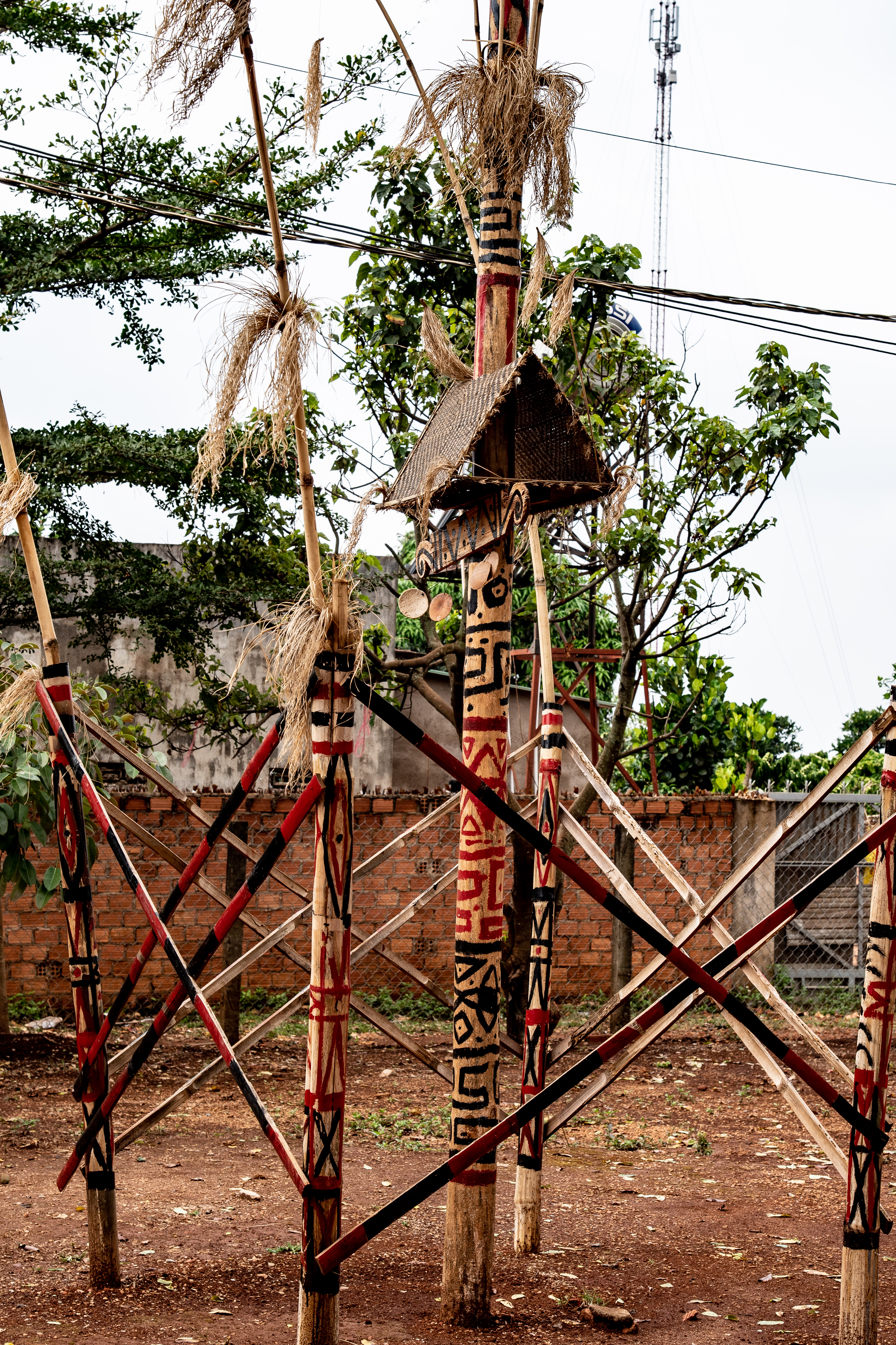 Outside the church, villagers pay homage to their ancient animist religion.