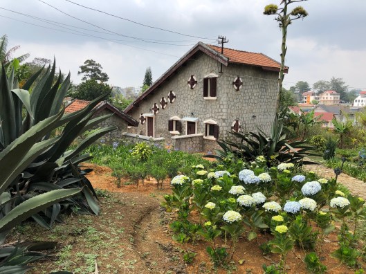 As we got closer to the City of Dalat the French influence became stronger. Dalat’s cool, high altitude and fertile landscape were attractive to the French, who had colonized Vietnam as part of French Indochina from the late 19th century to 1954. (Think Catherine Deneuve in the movie Indochine). They brought with them French-style architecture, Catholicism, an extensive railroad, flowers, plants, and coffee in addition to the cruel and abusive colonial dominance.