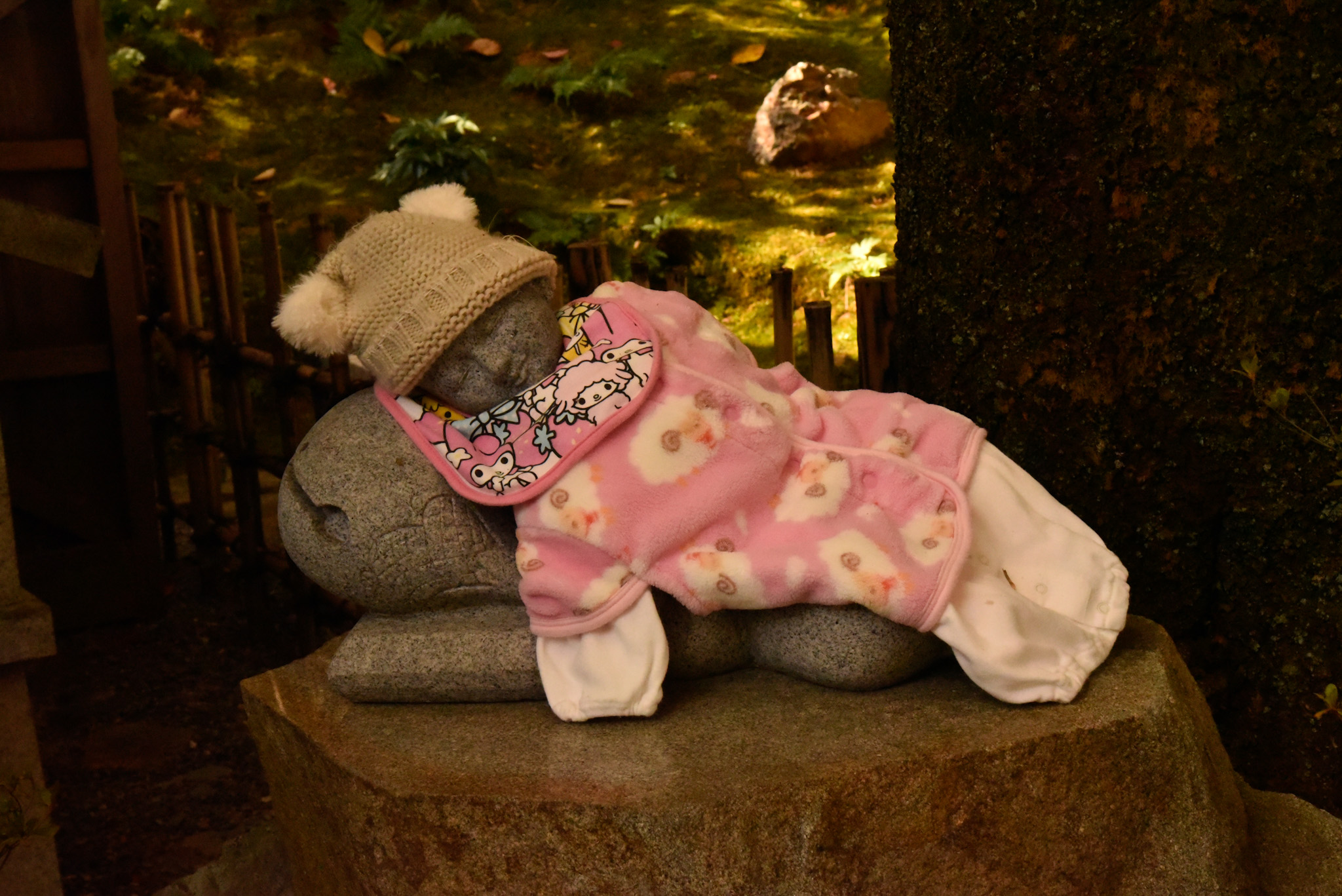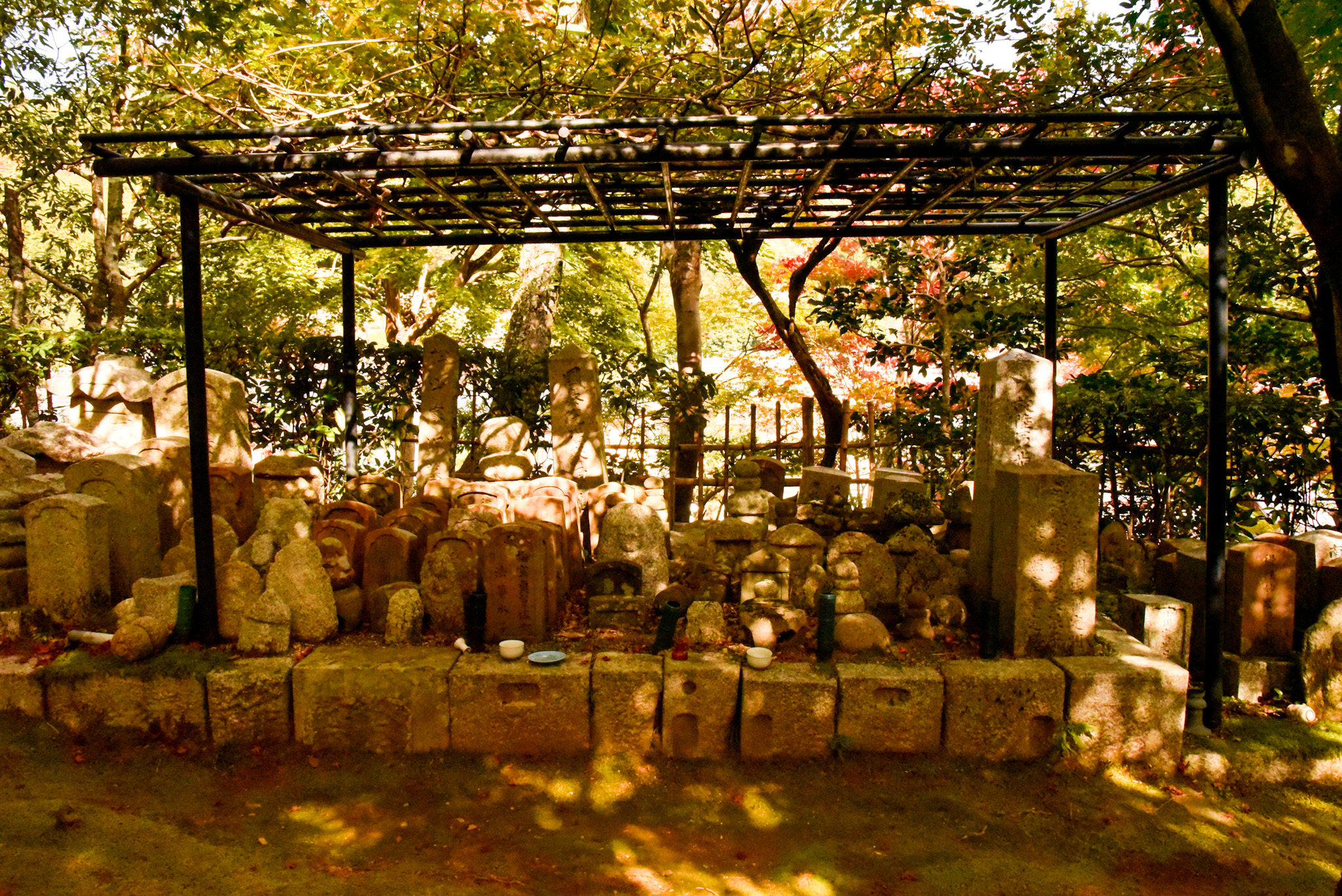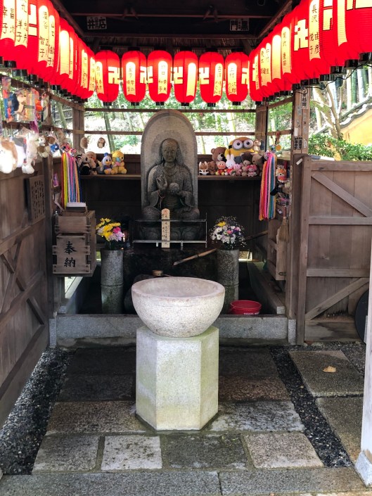 A stone statue of a baby dressed in contemporary clothes was part of this sacred place. Adashi in Adashino means short lived and futile. We saw many stone statues, some quite rudimentary with red bibs, in homage to babies. Below is an Adashino Altar surrounded by children’s toys.