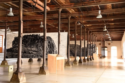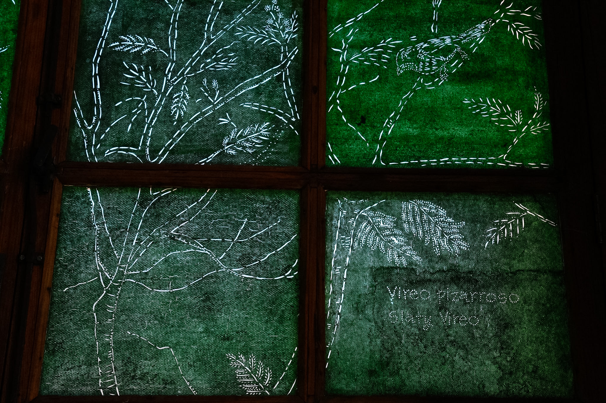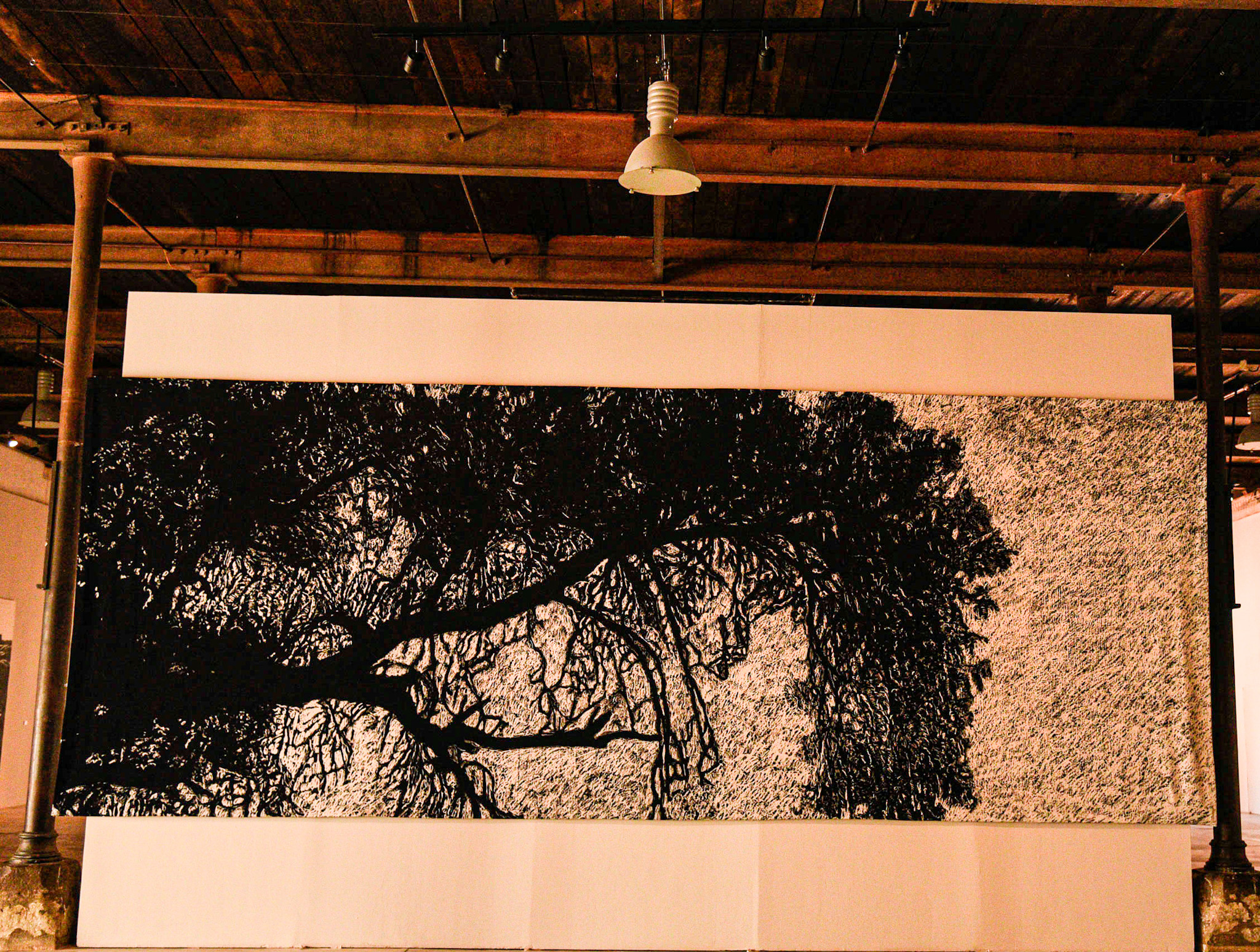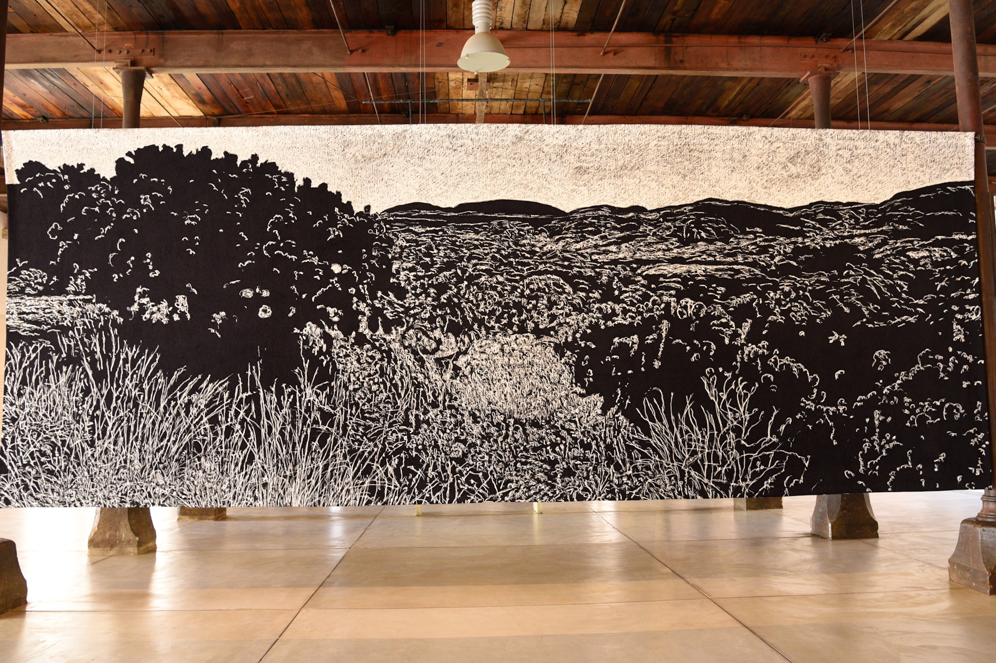 The exhibit in the huge exhibition space at CaSa is titled The poet and the artist, Seamus Heaney & Jan Hendrix in Yagul. It is a stunning collaboration between the poet and the artist rendered in monumental tapestries, silk screens, and serigraphs.