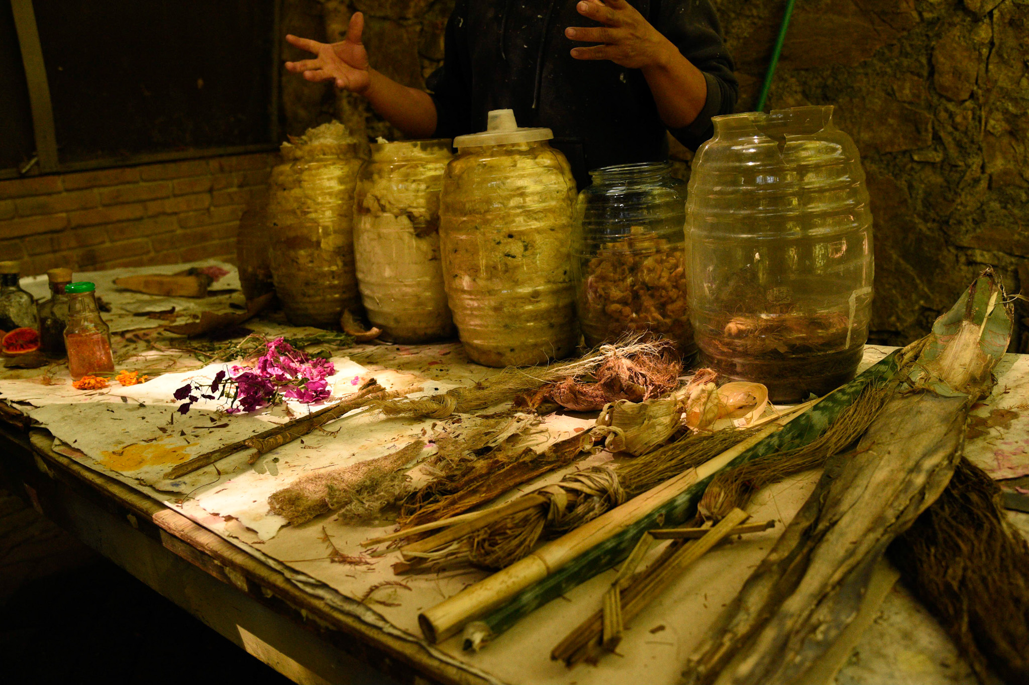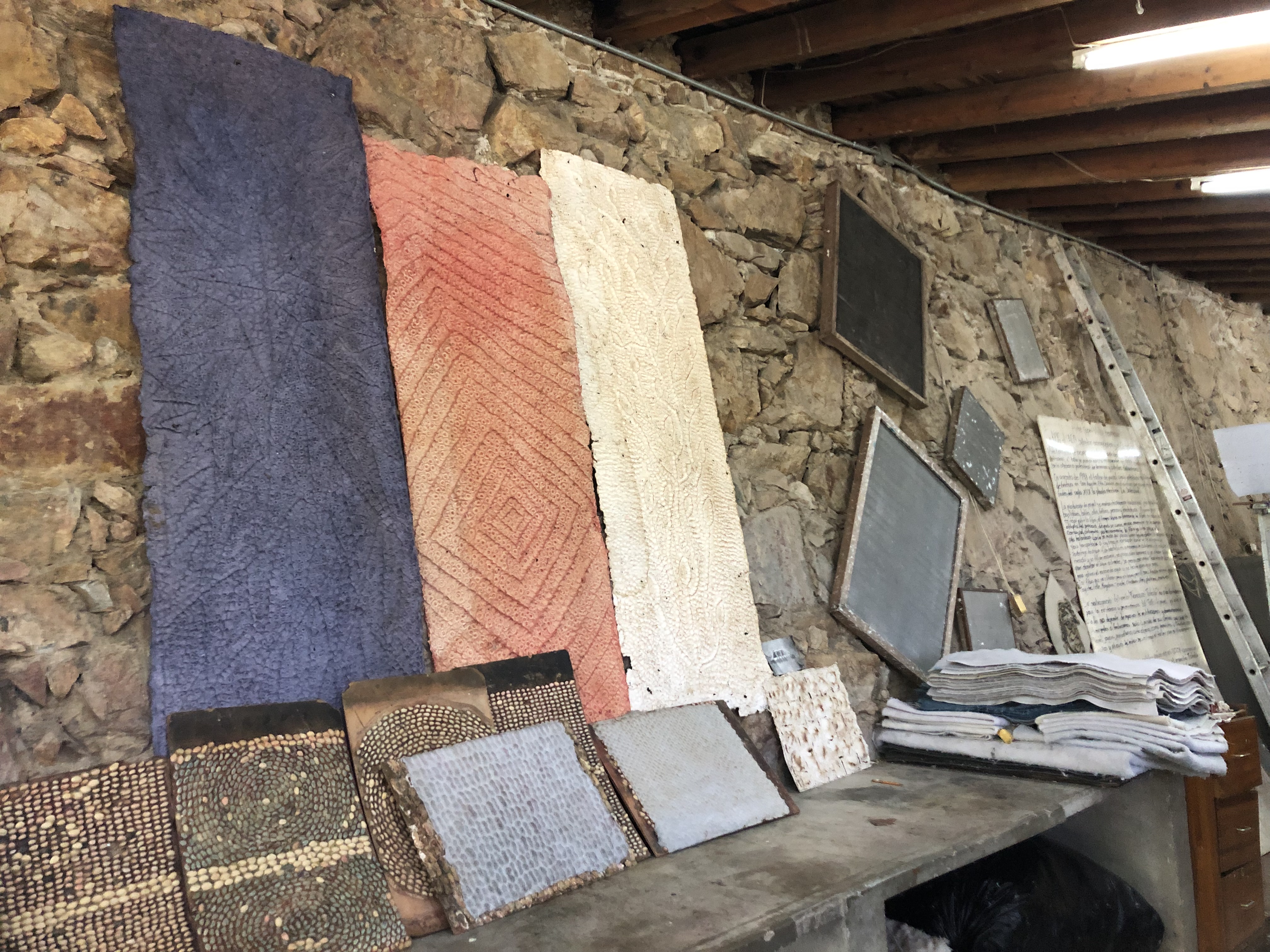 Flowers, plants, and minerals are used to color the paper which is made from renewable natural resources like bark, berries, and mica, all found locally.