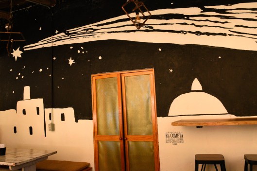 Waiting out in the street for a taxi we noticed a tiny restaurant called El Cometat with an unusual mural. Interesting art can be found anywhere in Oaxaca.